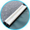 - Полипропиленовые ремни из ПВХ, анкерные крепления и стальные фиксаторы обеспечивают плотное прилегание к кромке бассейна и предотвращают трение, продлевая срок службы накрытия.